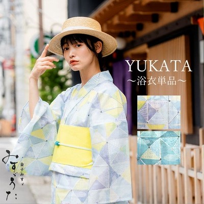 【美品】浴衣単品 紙ふうせん 空色 金子みすゞ みすゞうた 短時間着用 モダン 浴衣 単品 レディース フリーサイズ 紙ふうせん イエロー 薄紫